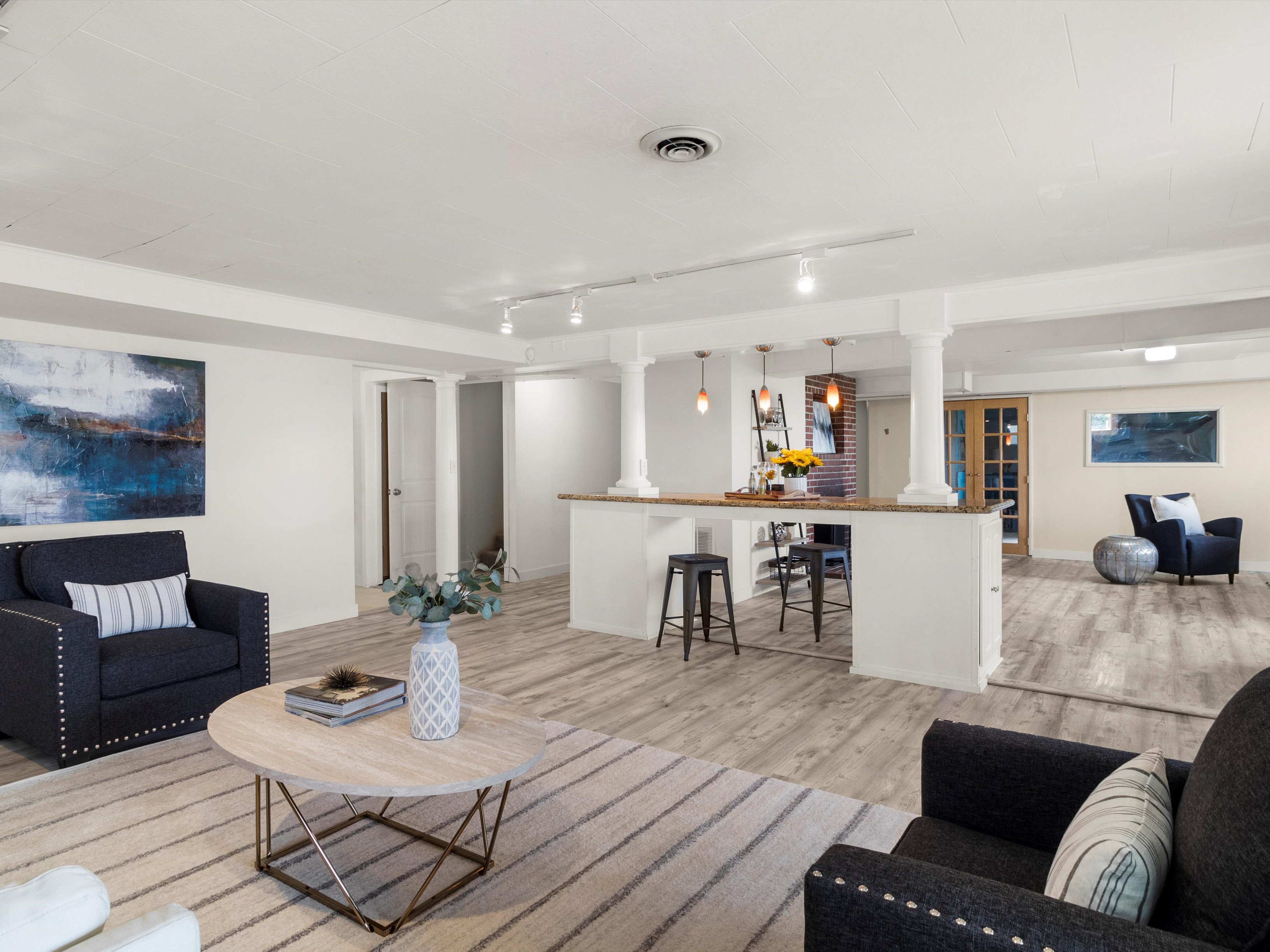 Recent updates include 90% high-efficiency furnace, newer roof, new water heater, and newer luxury vinyl floor in the basement.
